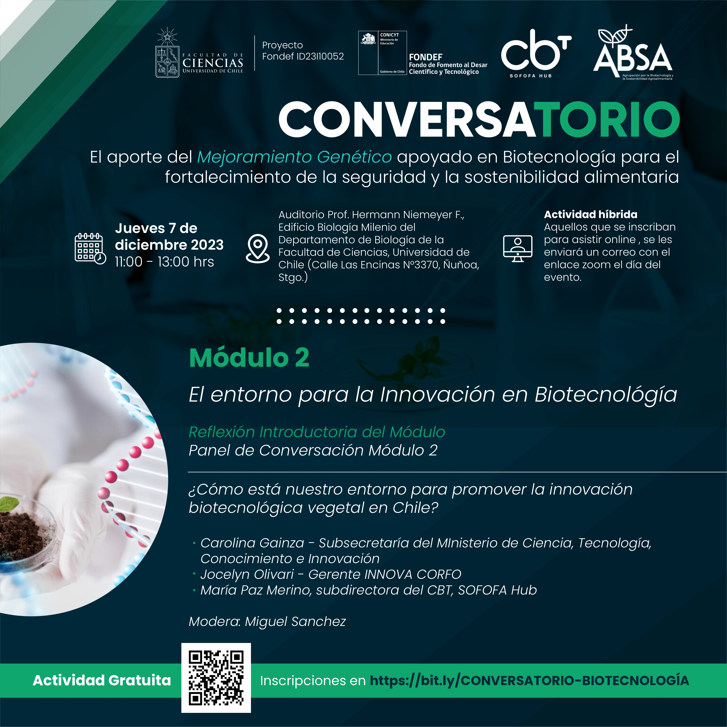 Link de inscripción: bit.ly/CONVERSATORIO-BIOTECNOLOGÍA