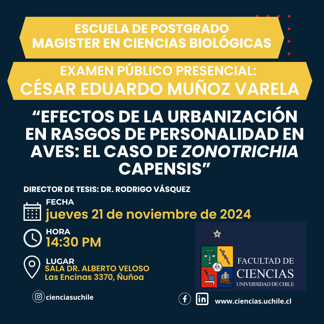 Examen de grado del estudiante César Muñoz Varela (c) Magister en Ciencias Biológicas