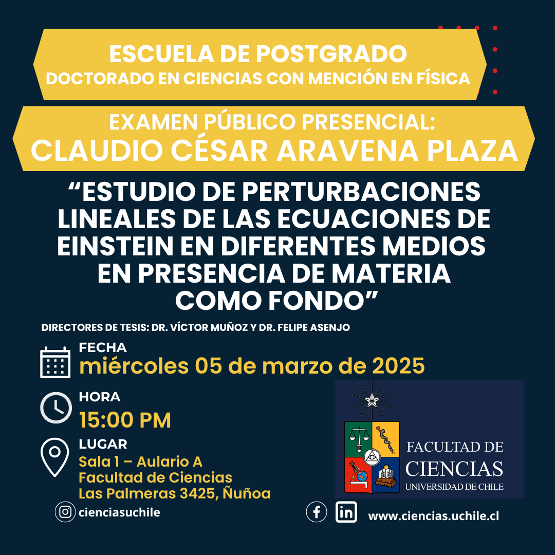 Examen de grado del estudiante Claudio César Aravena Plaza (c) Doctorado en Ciencias con mención en Física