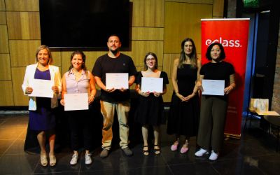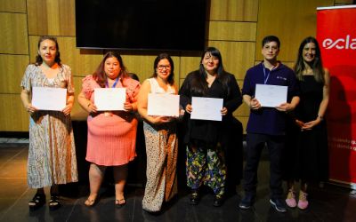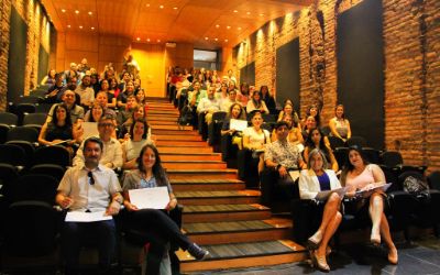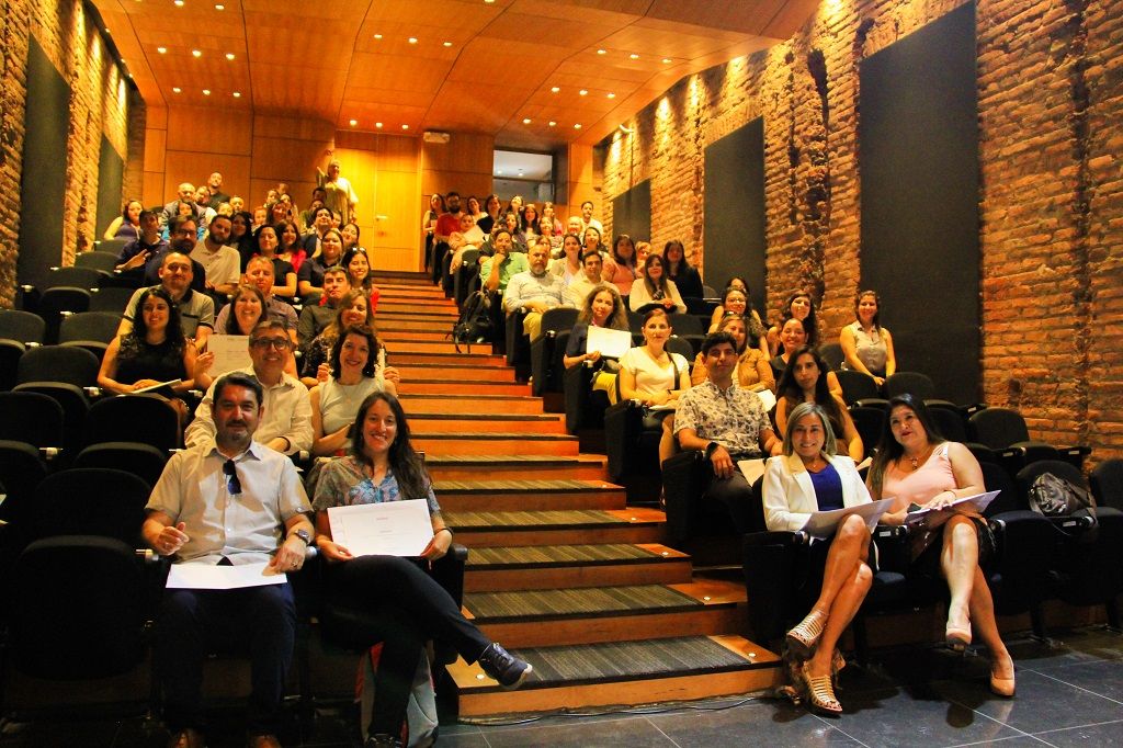 En masiva ceremonia relizada en la Facultad de Arquitectura y Urbanismo, la Dirección de Gestión y Desarrollo de Personas reconoció los nuevos aprendizajes y logros de funcionarias y funcionarios que aprobaron diplomas de especialización y el programa de inglés durante el año 2023.