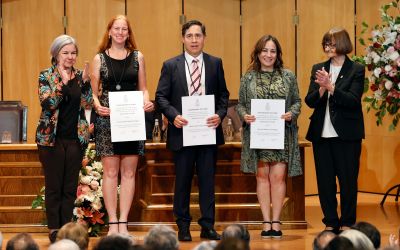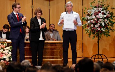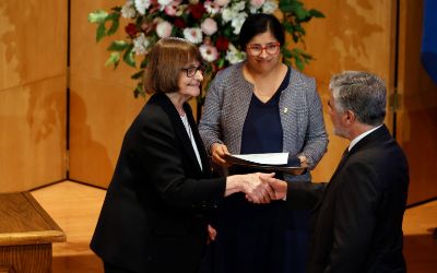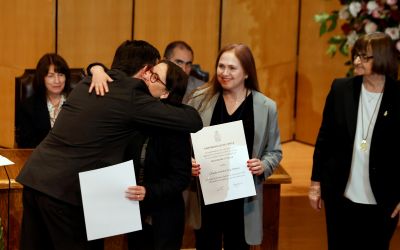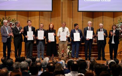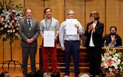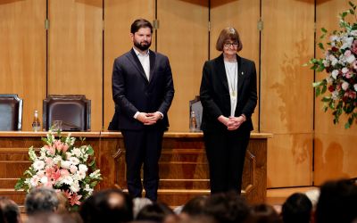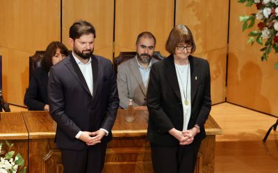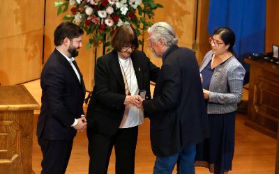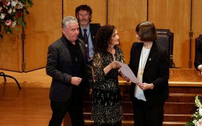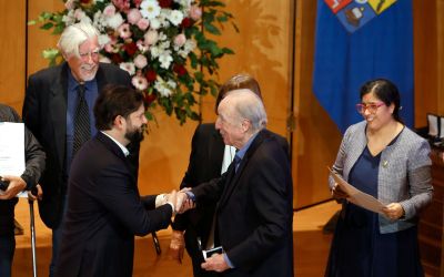 En el Aula Magna de la Facultad de Economía y Negocios, la comunidad de la Casa de Bello se reunió para conmemorar un nuevo aniversario institucional. La ceremonia, presidida por la Rectora Rosa Devés y que contó con la participación del Presidente Gabriel Boric, reconoció a 50 nuevos Profesores Titulares y otorgó la Medalla Rectoral a las y los seis Premios Nacionales 2025 que forman parte de la U. de Chile.