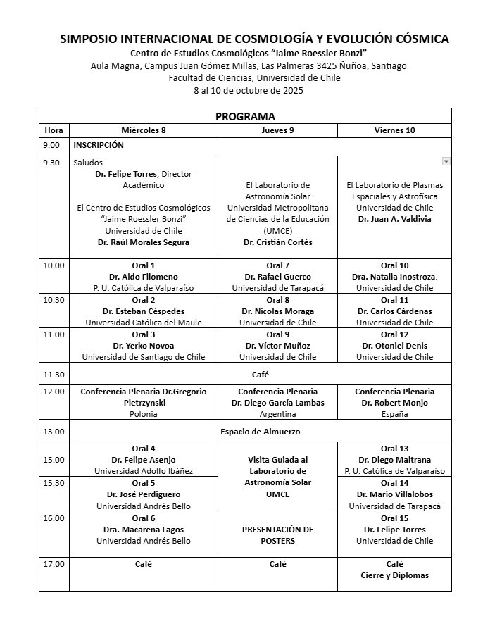 Este espacio busca fomentar la colaboración científica, el intercambio académico y la difusión del conocimiento en física y astronomía, ofreciendo además una oportunidad única para que estudiantes, académicos y público interesado puedan acercarse a los temas más actuales de la cosmología moderna.