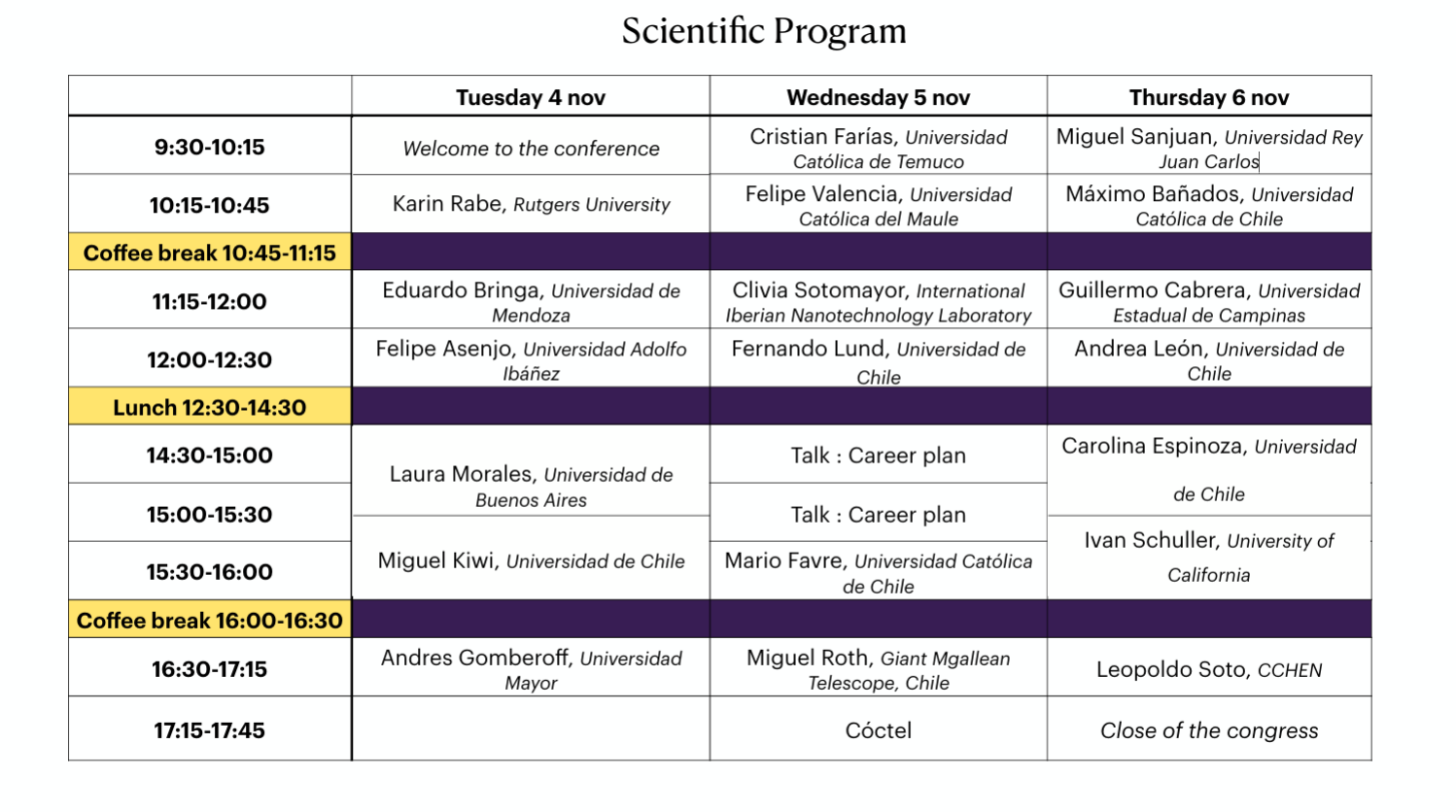 Este congreso contará con la participación de destacados académicos internacionales en grafeno, plasma espacial, física de la complejidad y materia condensada, además de charlas de divulgación dictadas por ex estudiantes destacados/as del Departamento de Física.