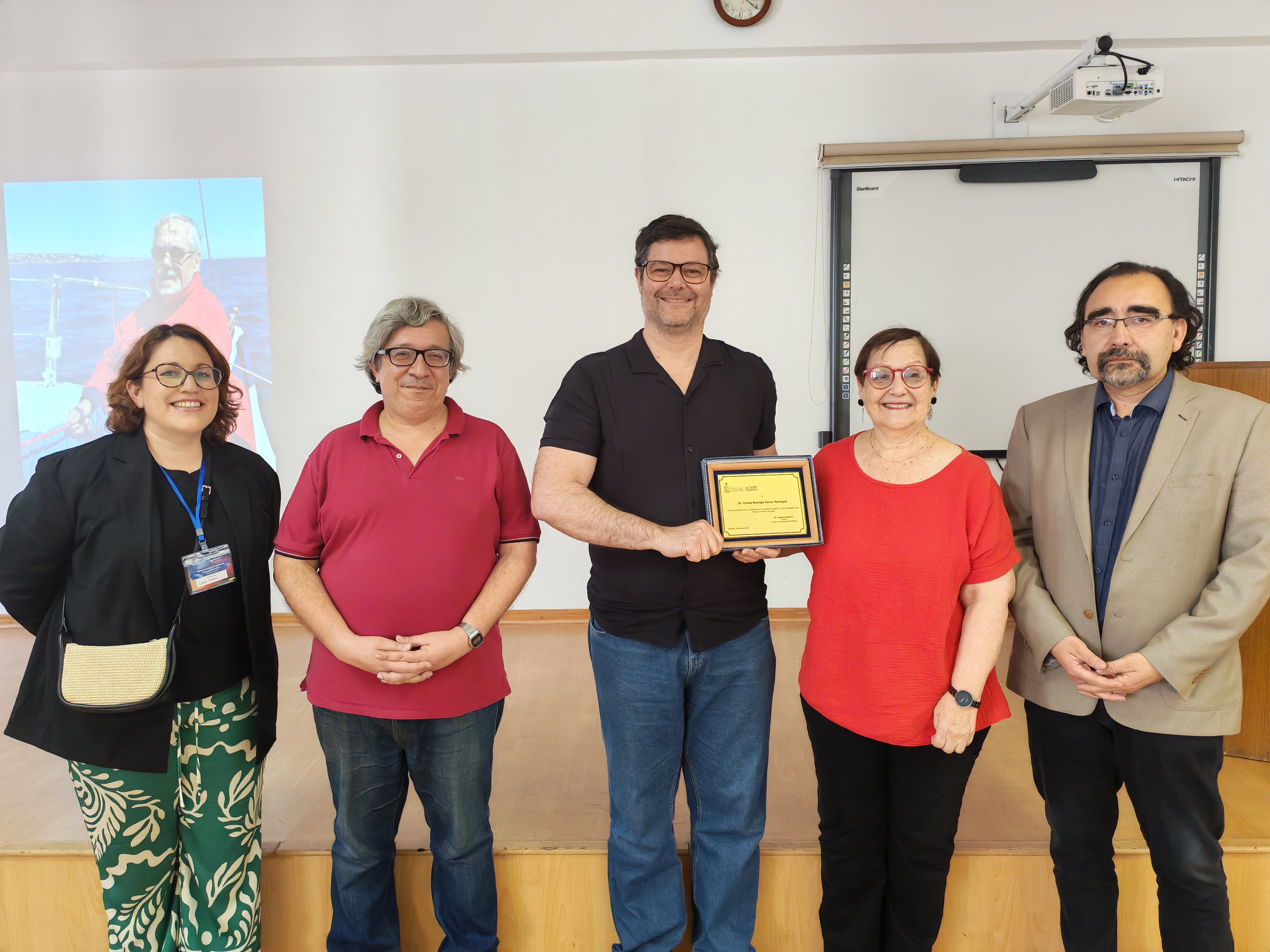 Por otra parte, se dio un homenaje al Dr. Rodrigo Ferrer (Q.E.P.D.) con emotivas palabras del Prof. Víctor Muñoz, quien, entre otras, mostró fotos del Dr. Ferrer haciendo clases en el laboratorio y con el túnel de viento. Este reconocimiento se realizó por su trayectoria como docente en el área de la física y su reconocida labor de enseñanza, donde sus exalumnos agradecieron con un emotivo mensaje en video. En este sentido homenaje estuvo presente su esposa y su hijo, quienes valoraron este reconocimiento.