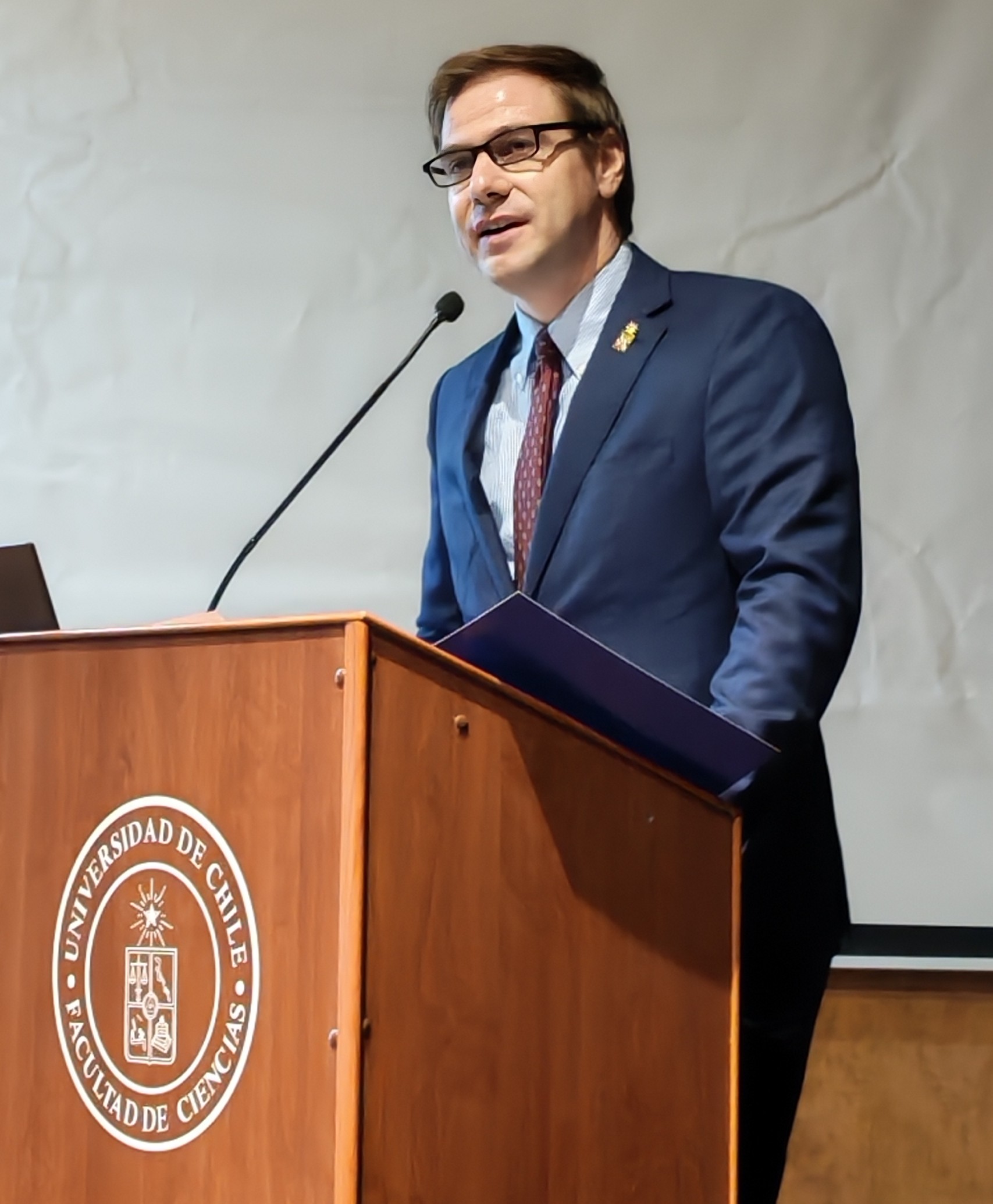El Vicedecano de la Facultad de Ciencias, Dr. Robert Auffarth, también entregó unas palabras motivadoras dirigidas especialmente a los estudiantes. “La ciencia se hace a veces de forma lenta, reflexiva y con experimentación constante. Enfrentamos desafíos y problemas que debemos resolver. Esa es la esencia de la labor científica: sobreponerse a los obstáculos sin frustrarse”.