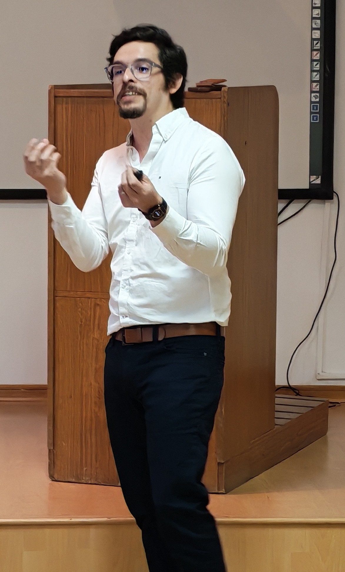 El Dr. Néstor Espinoza presentó su conferencia llamada "Sniffing Exoplanet Atmospheres with the James Webb Space Telescope", en la que abordó el estudio de atmósferas de exoplanetas a partir de las observaciones del Telescopio Espacial James Webb (JWST).